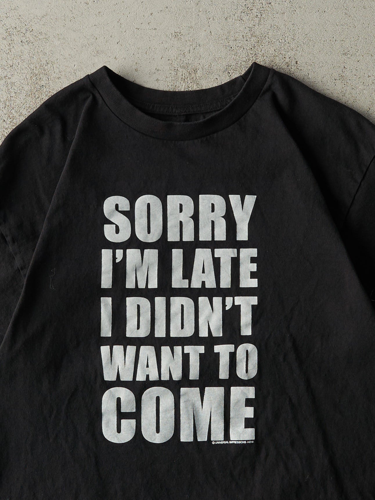Vintage Y2K Black "Sorry I'm Late" Slogan Tee (M)