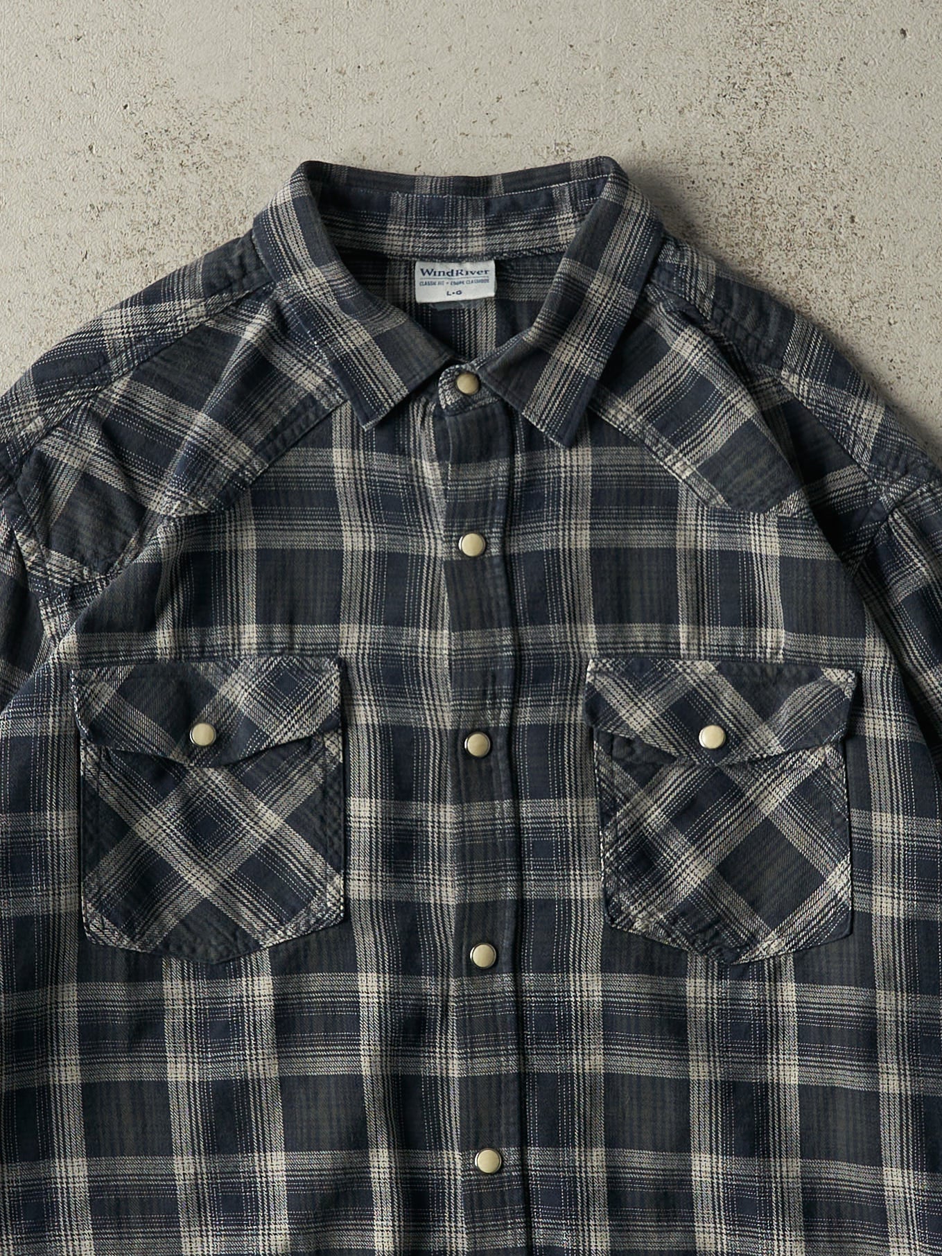 Vintage Y2K Blue & Green Flannel Button Up (M)