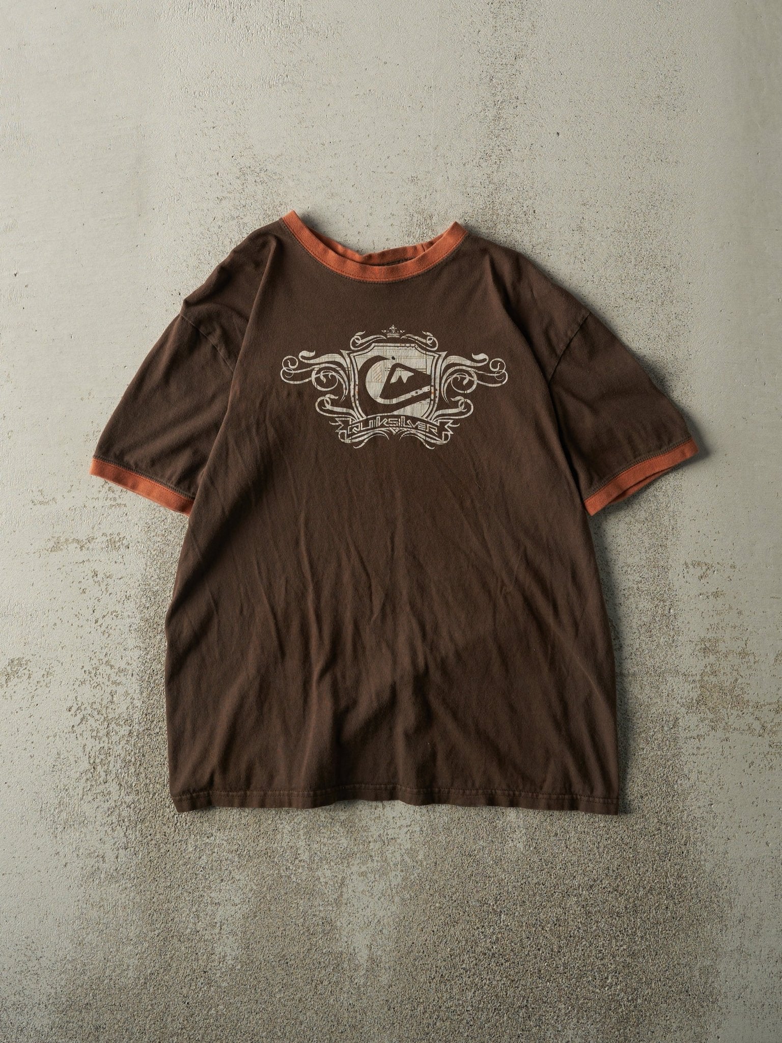 Vintage Y2K Brown & Orange Quicksilver Ringer Tee (S)