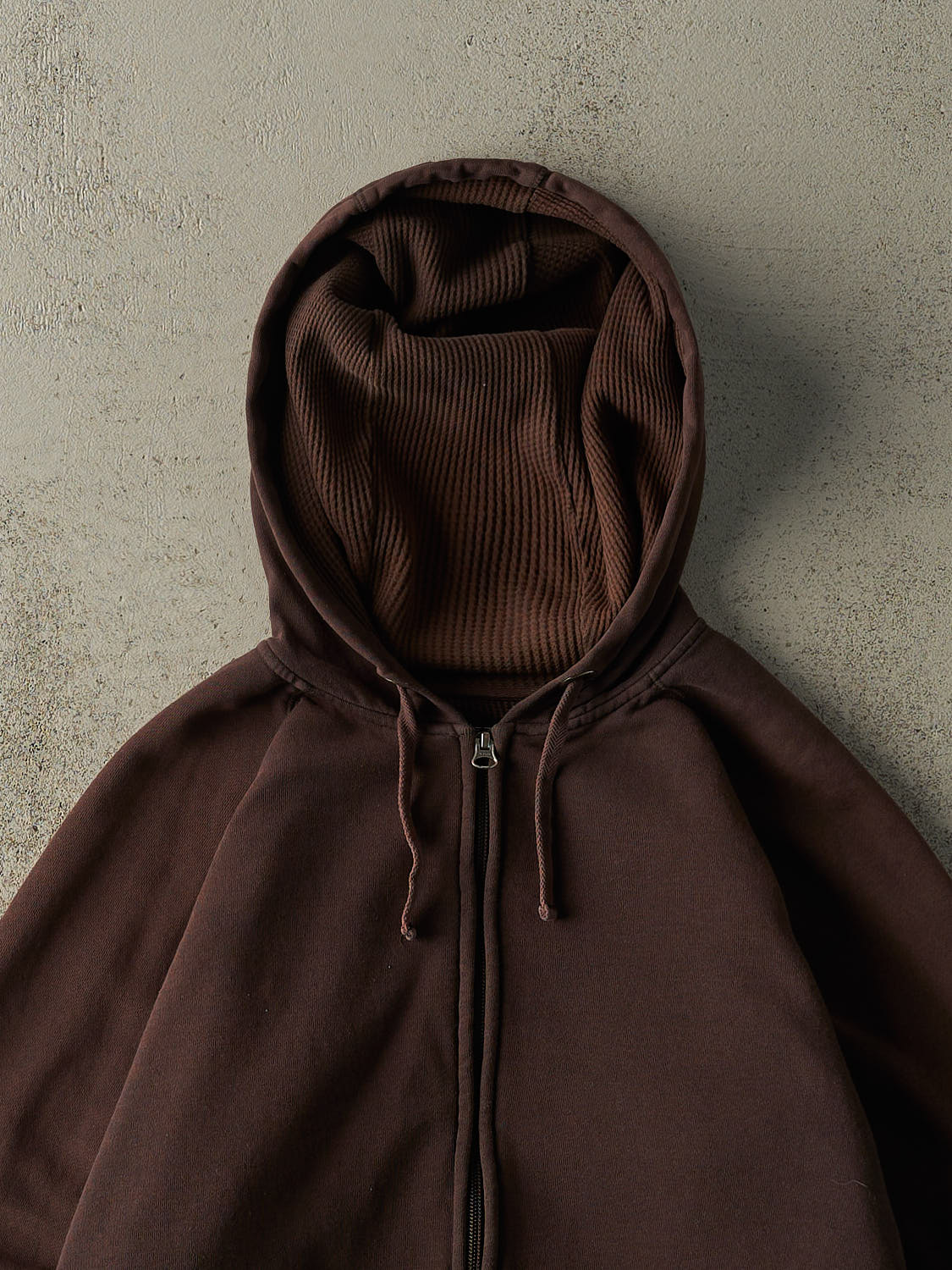 Vintage Y2K Brown Thermal Lined Zip Up Hoodie (L)