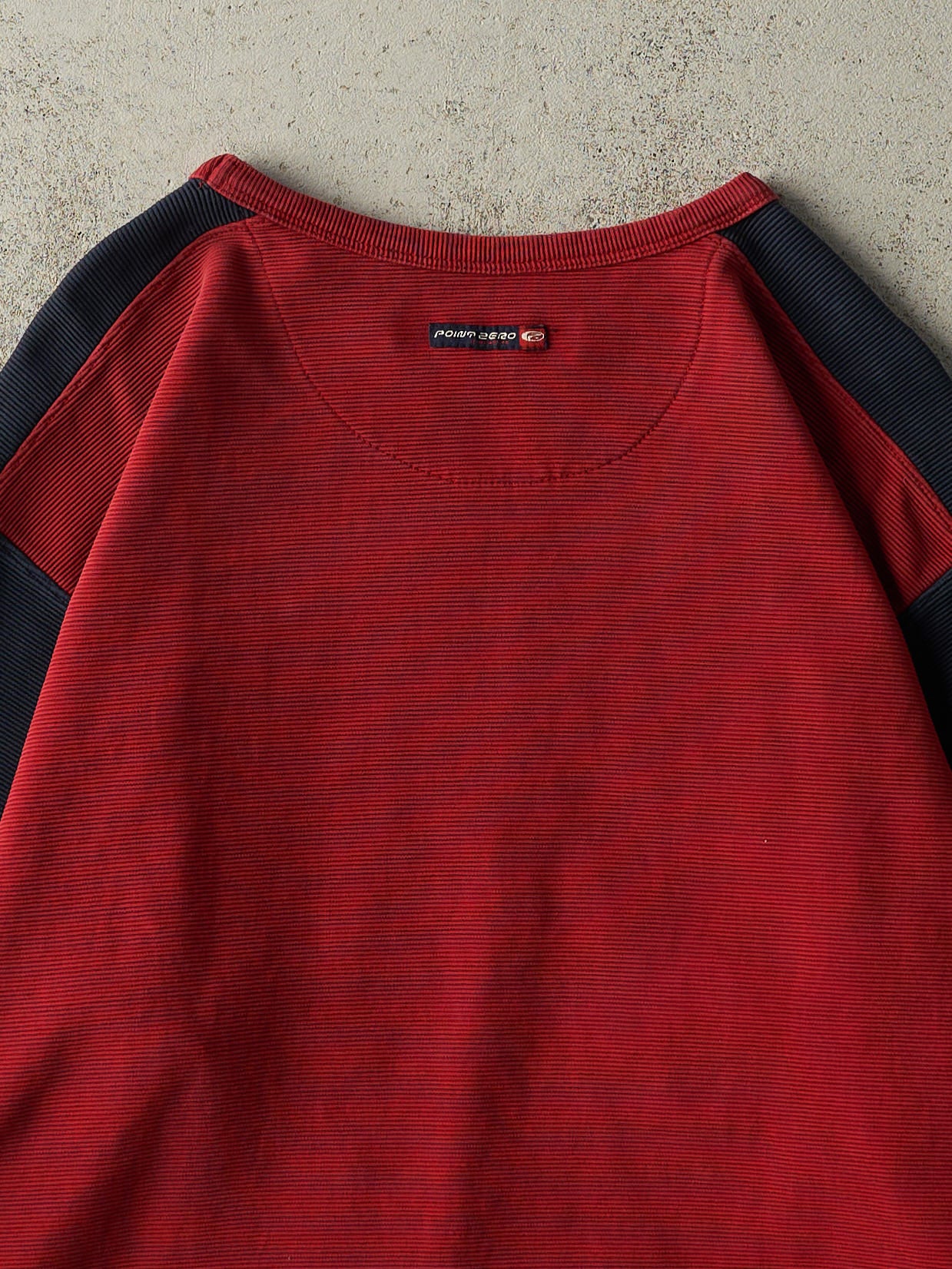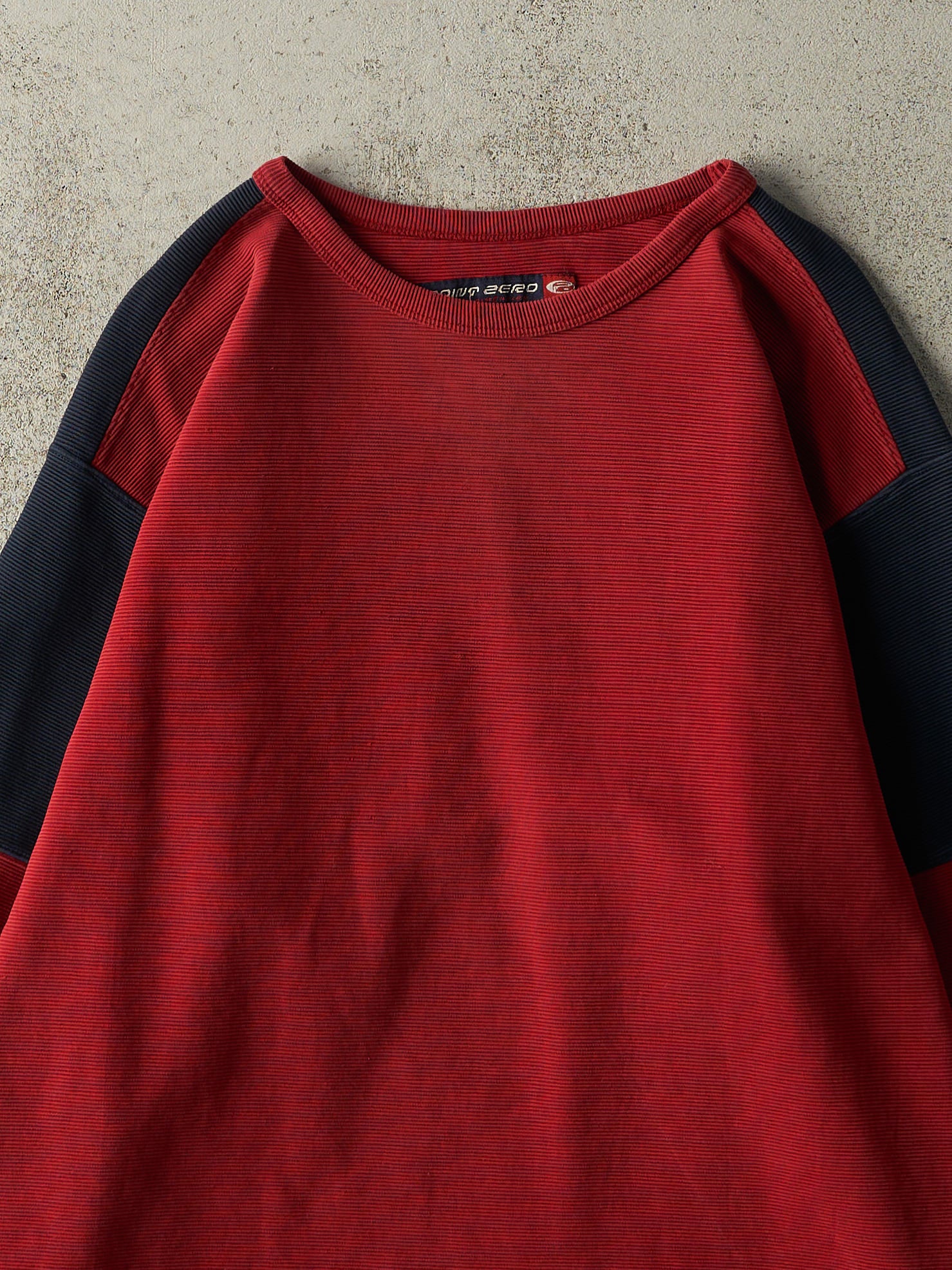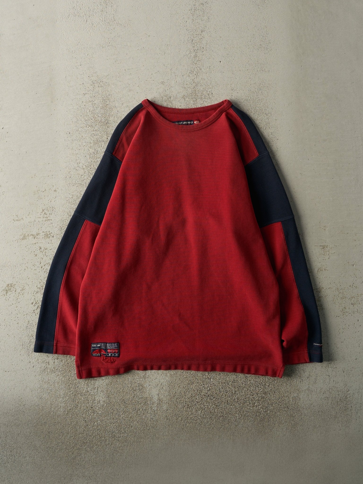 Vintage Y2K Burgundy & Navy Thermal Long Sleeve (M)