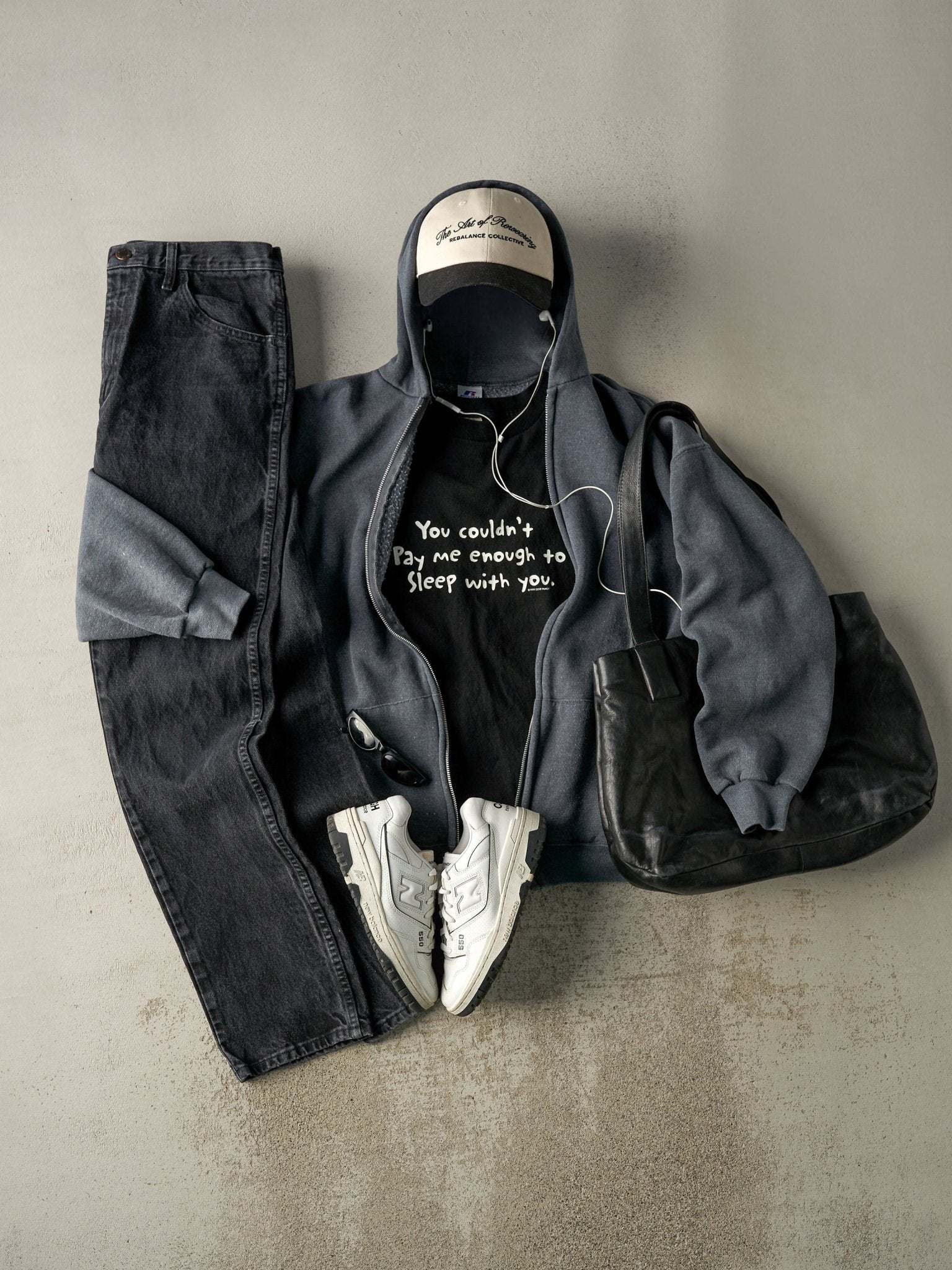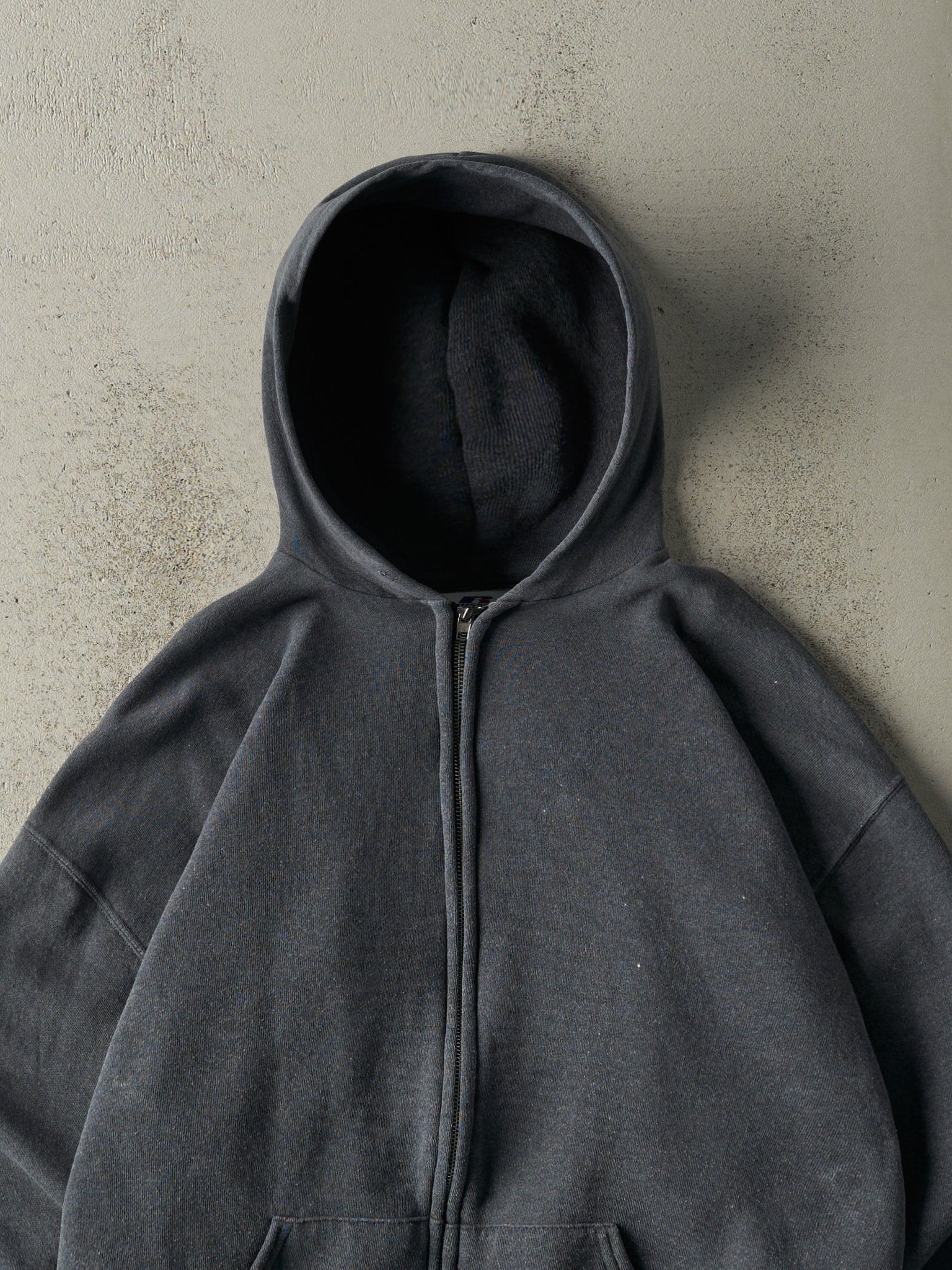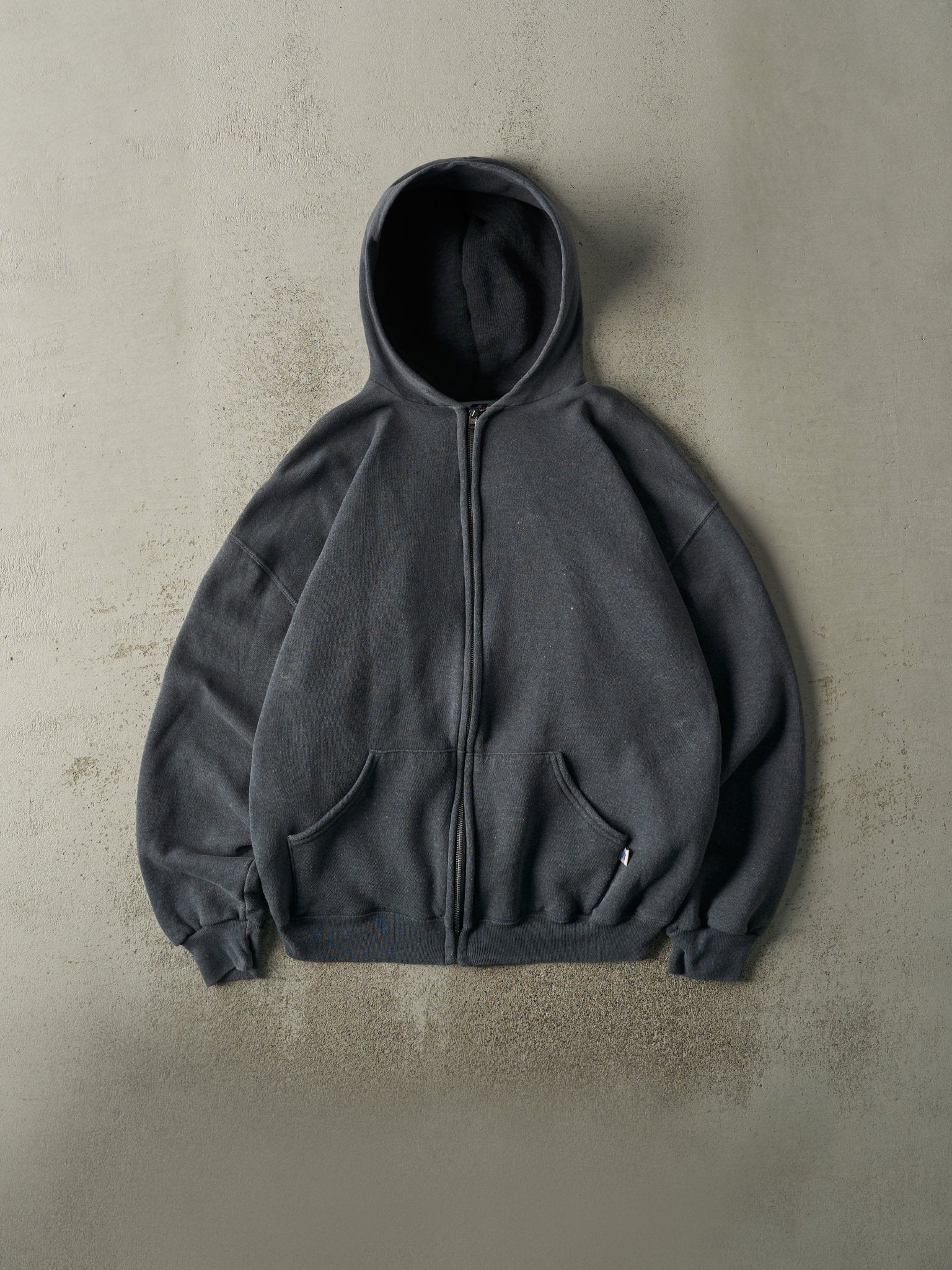 Vintage Y2K Charcoal Grey Russell Athletic Zip Up Hoodie (L)