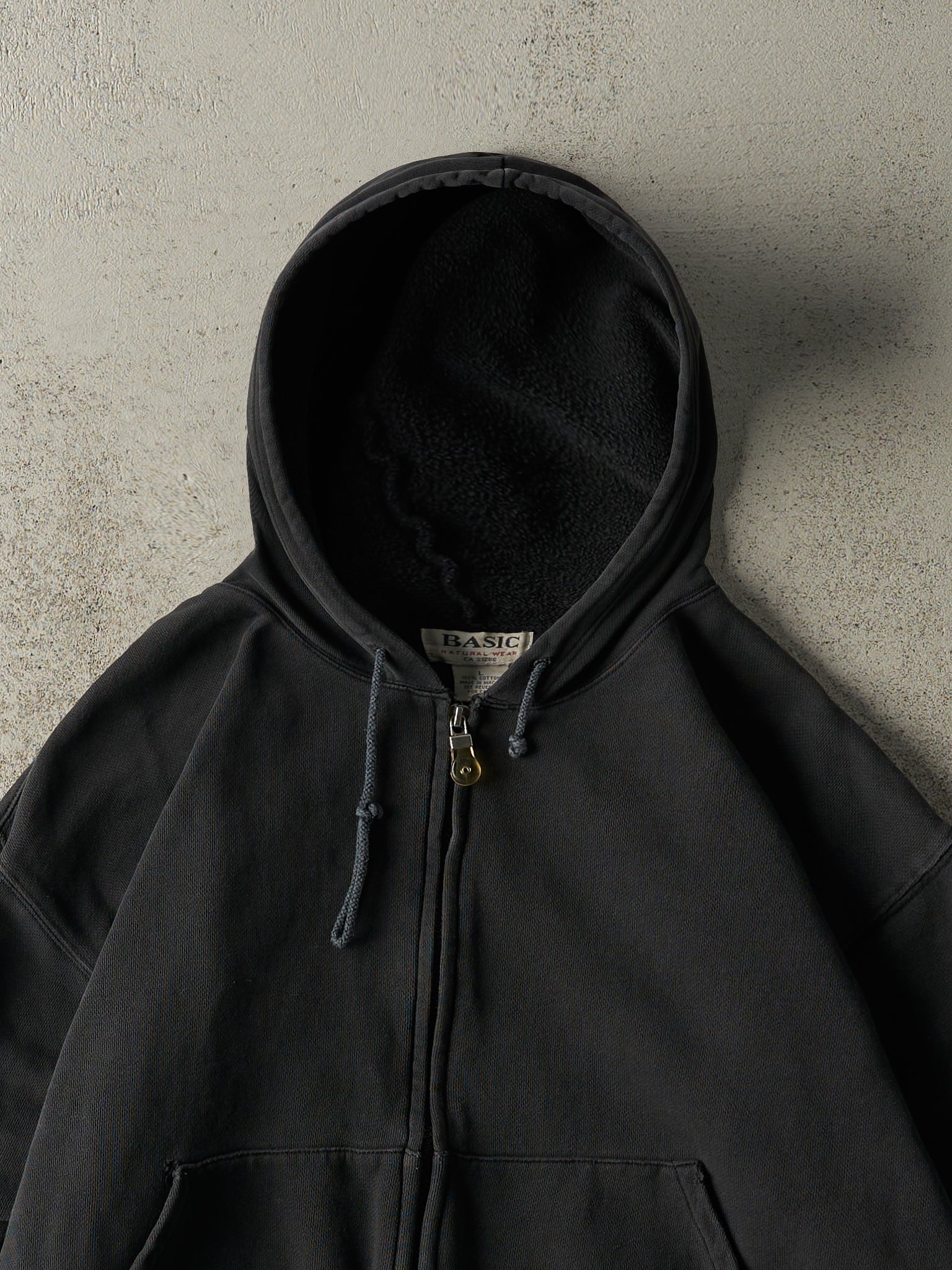 Vintage Y2K Faded Black Zip Up Boxy Hoodie (ML)