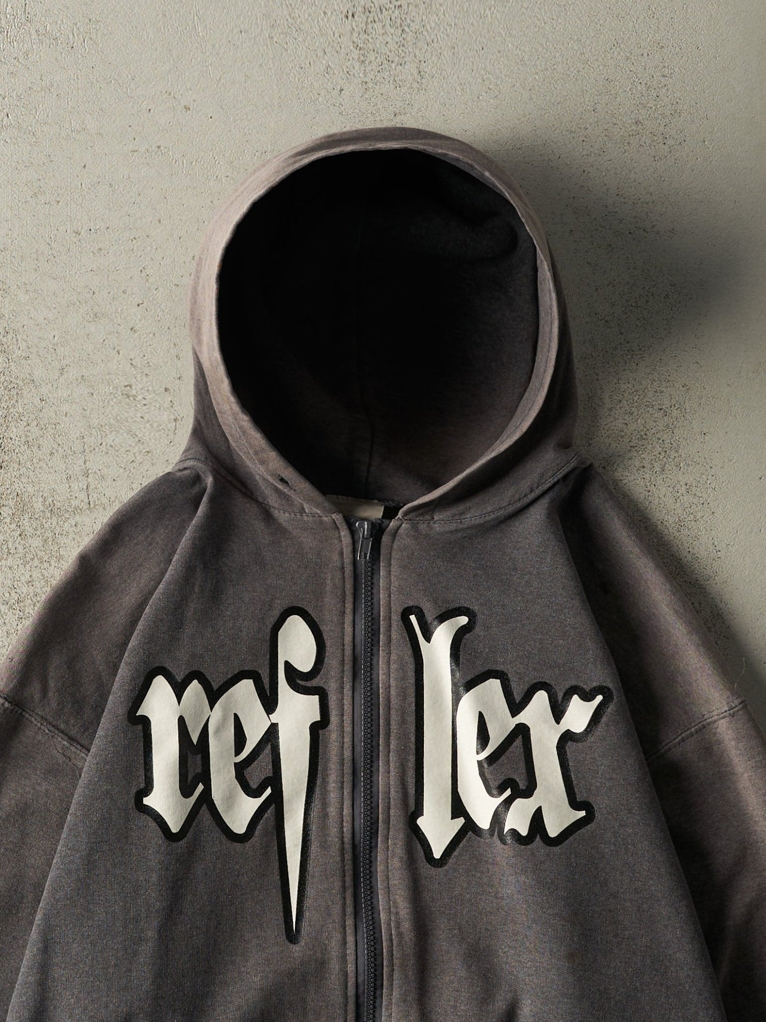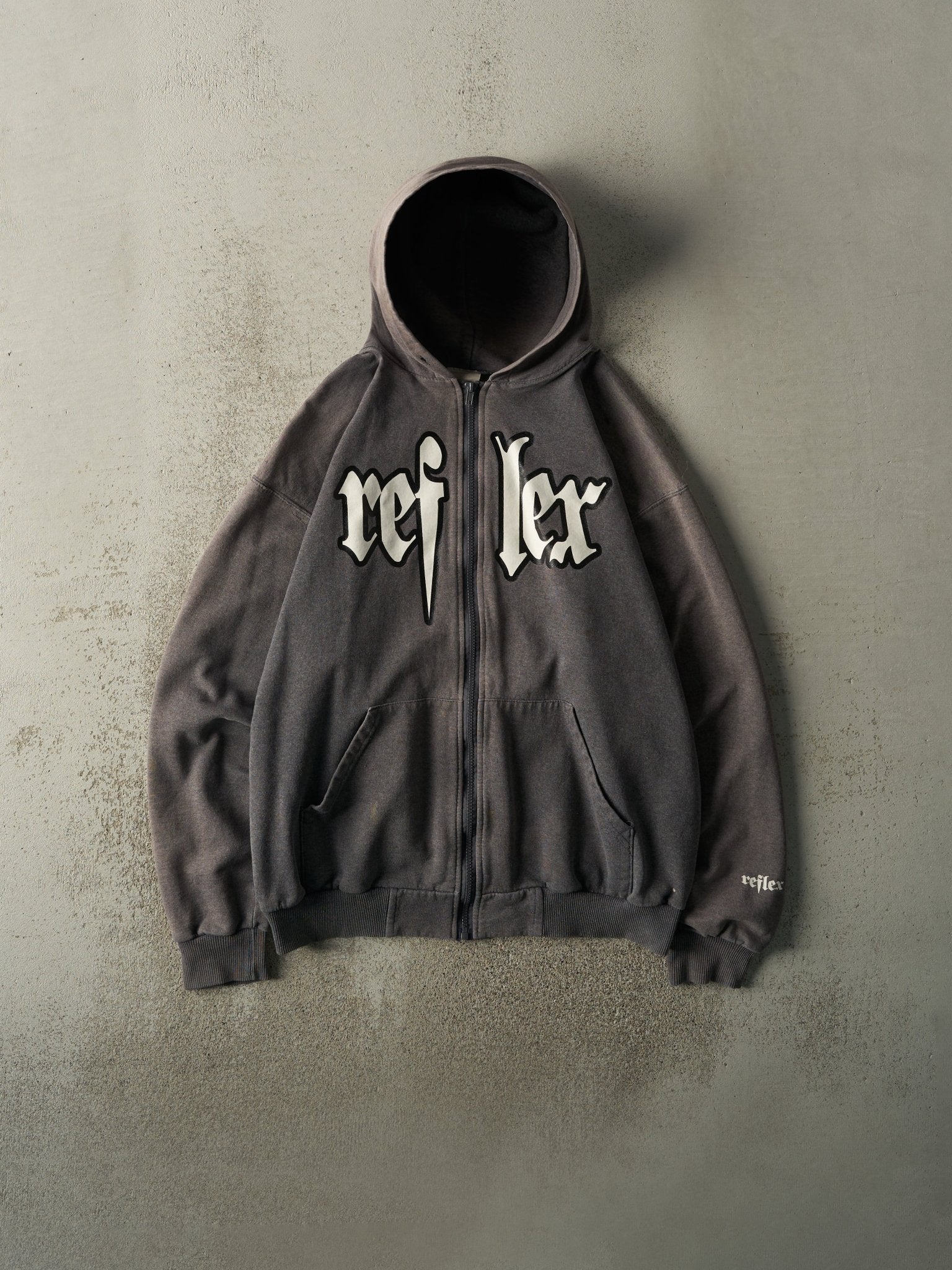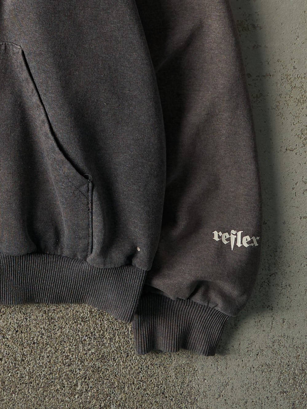 Vintage Y2K Faded Charcoal Grey Reflex Zip Up Hoodie (L)