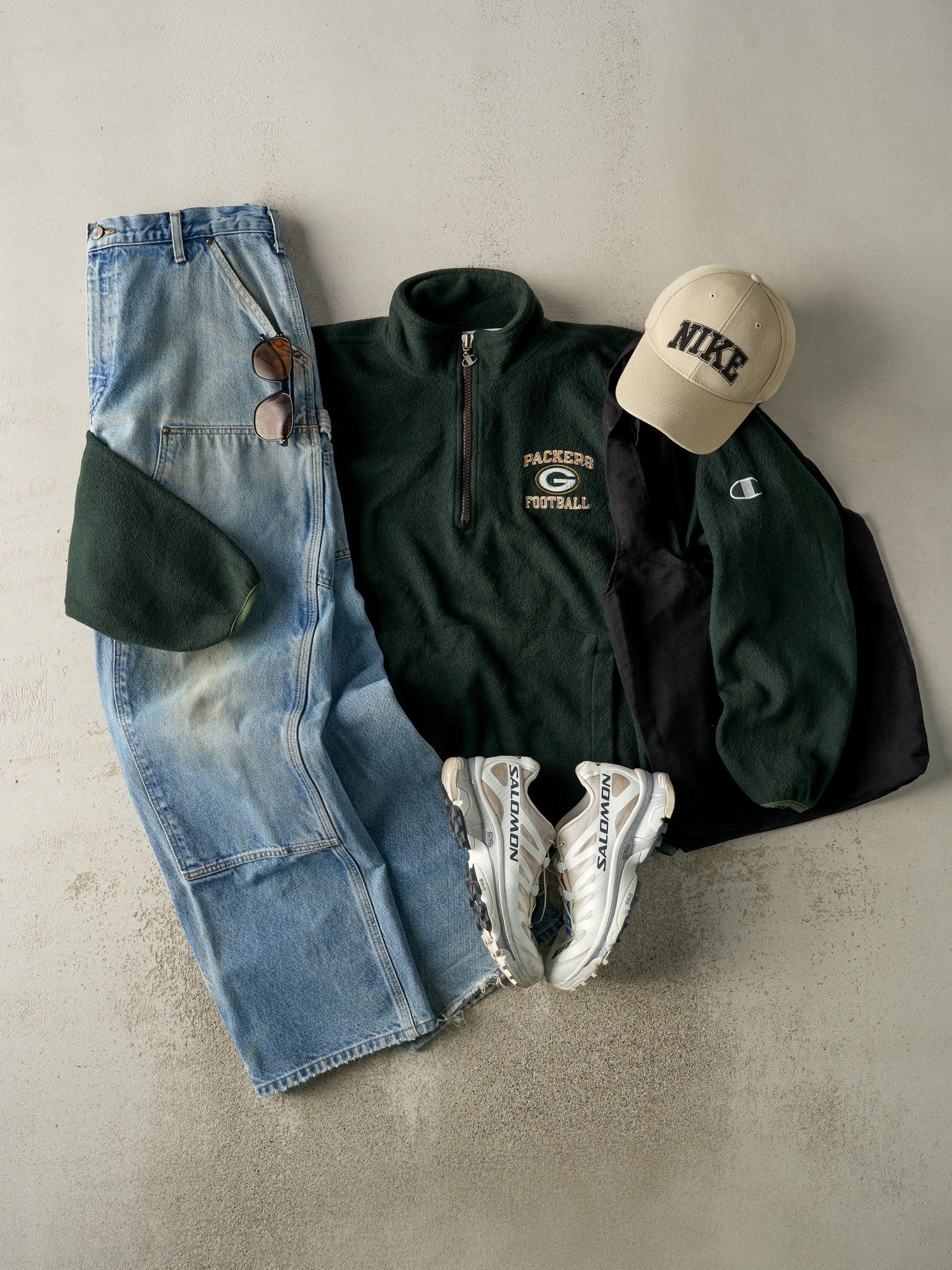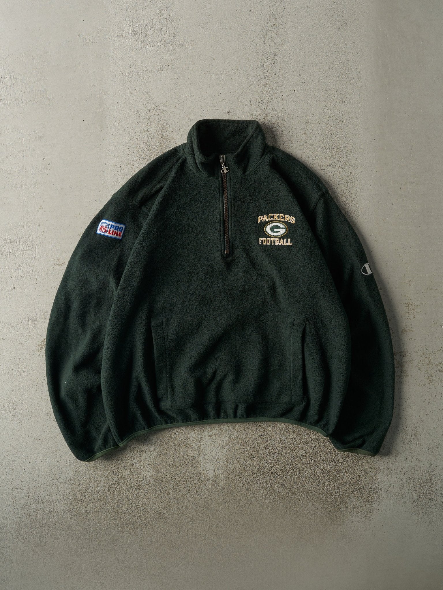 Vintage Y2K Green Embroidered Green Bay Packers Fleece Quarter Zip (XL)