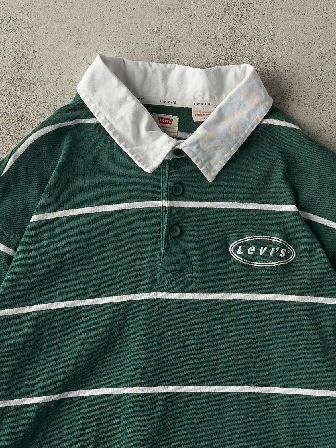 • Vintage Y2K Green & White Levi's Embroidered Quarter Button Rugby Shirt (M/L)