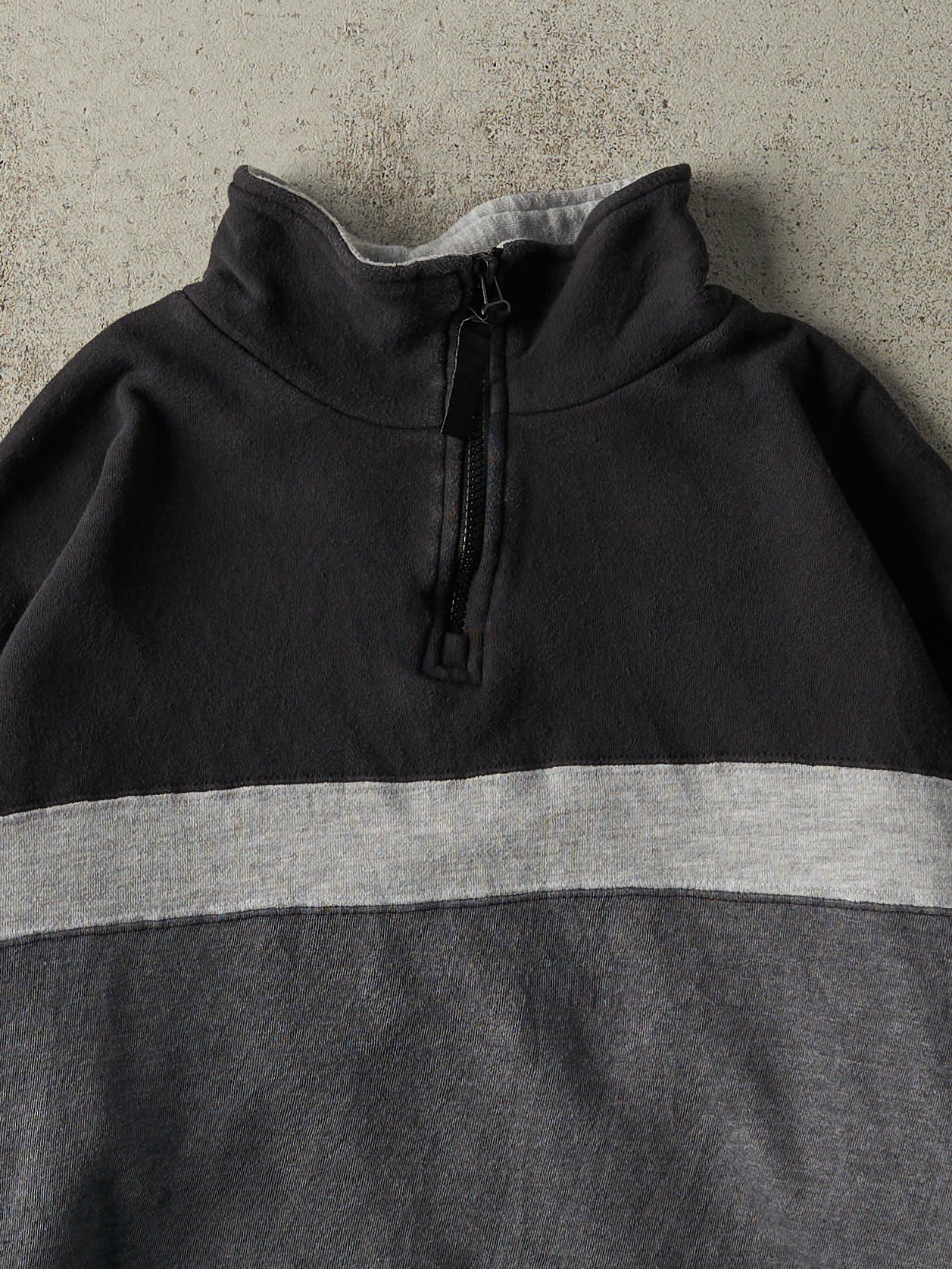 Vintage Y2K Grey & Black Quarter Zip Boxy Sweatshirt (L)