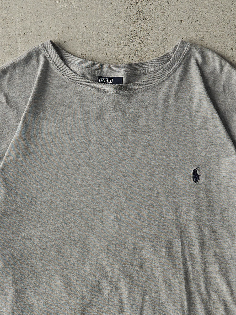 Vintage Y2K Grey Polo Ralph Lauren Logo Tee (L/XL)