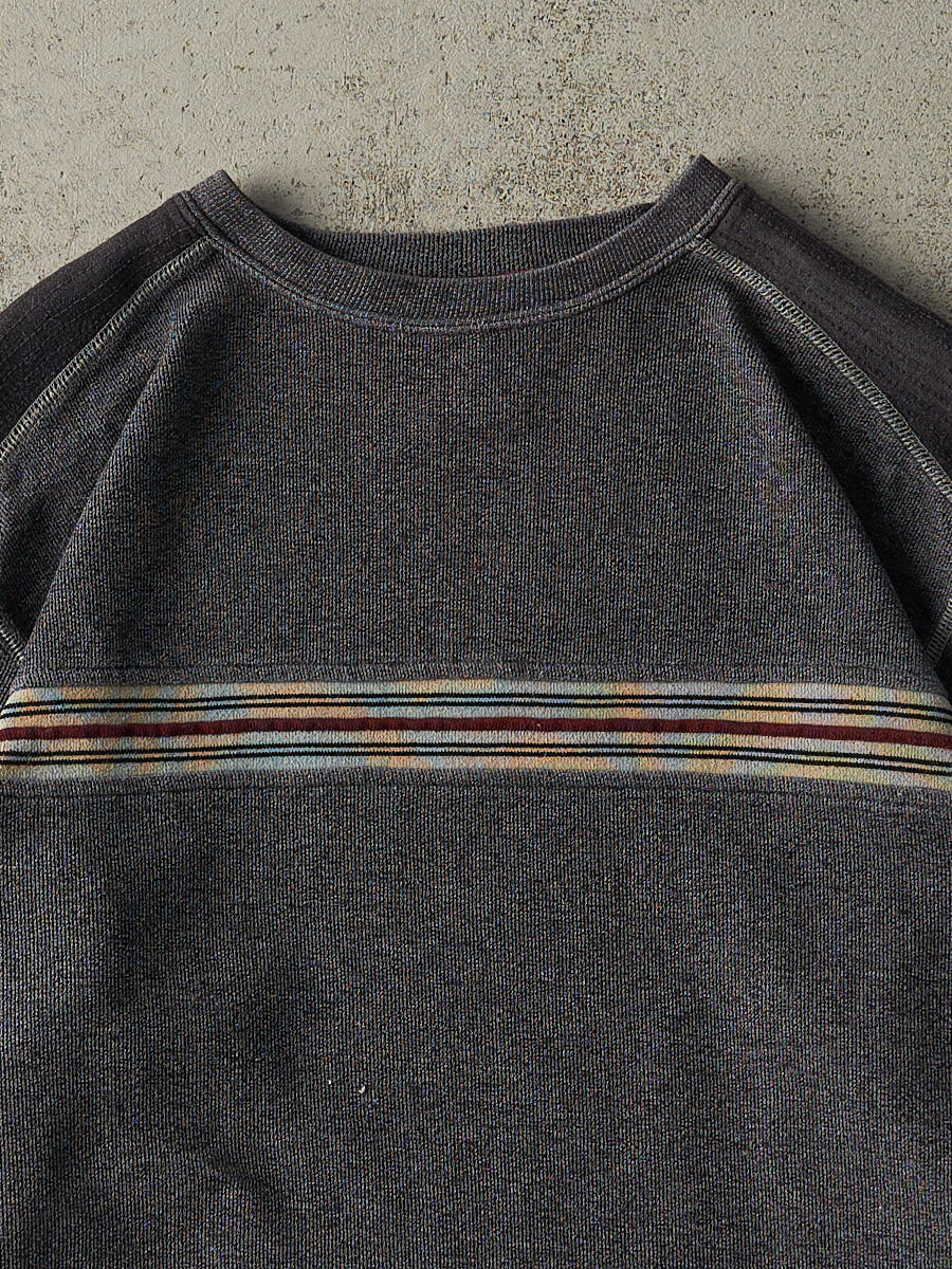 Vintage Y2K Grey Striped Thermal Long Sleeve (L)