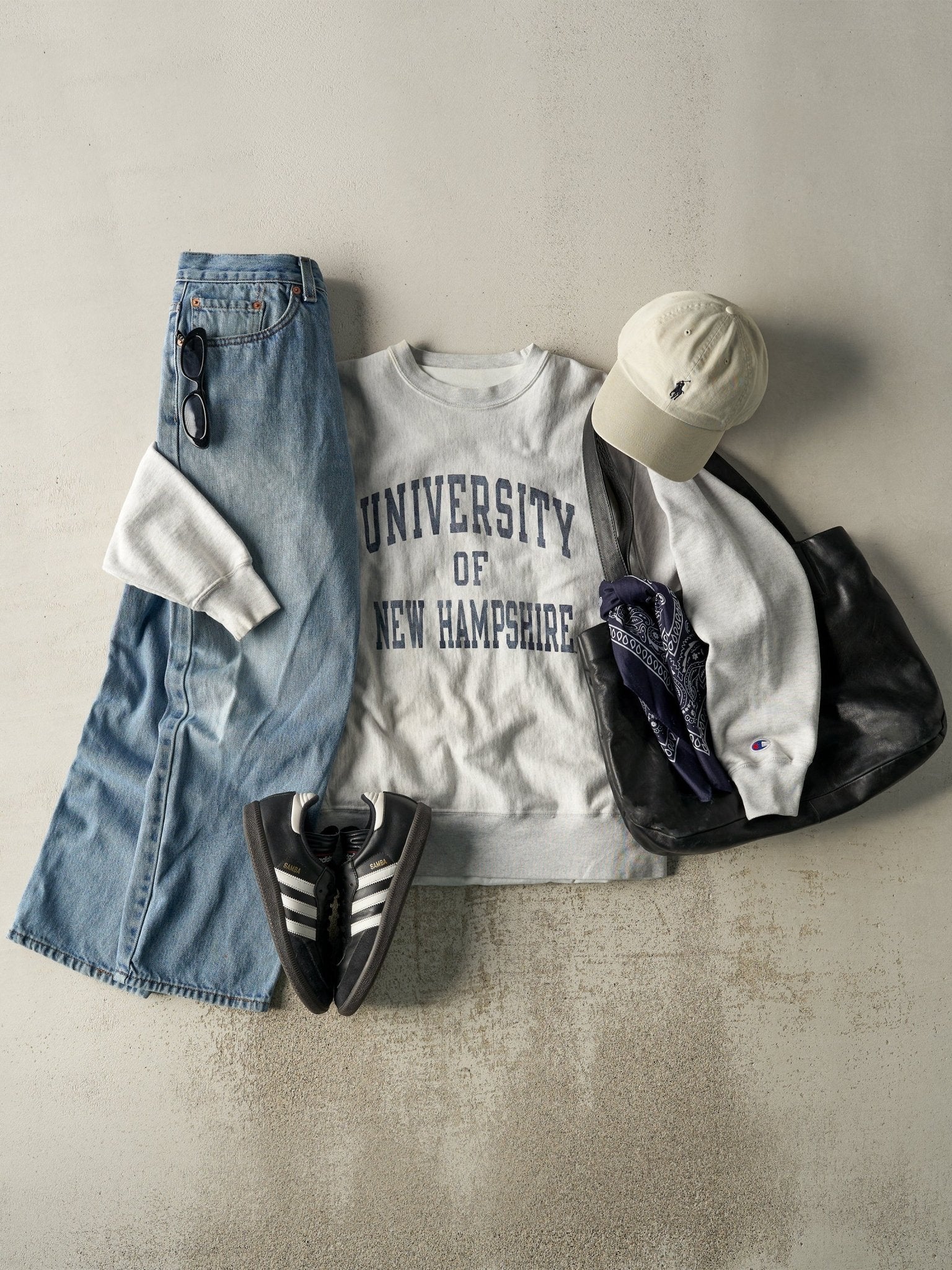 Vintage Y2K Heather Grey University of New Hampshire Champion Reverse Weave Crewneck (M)