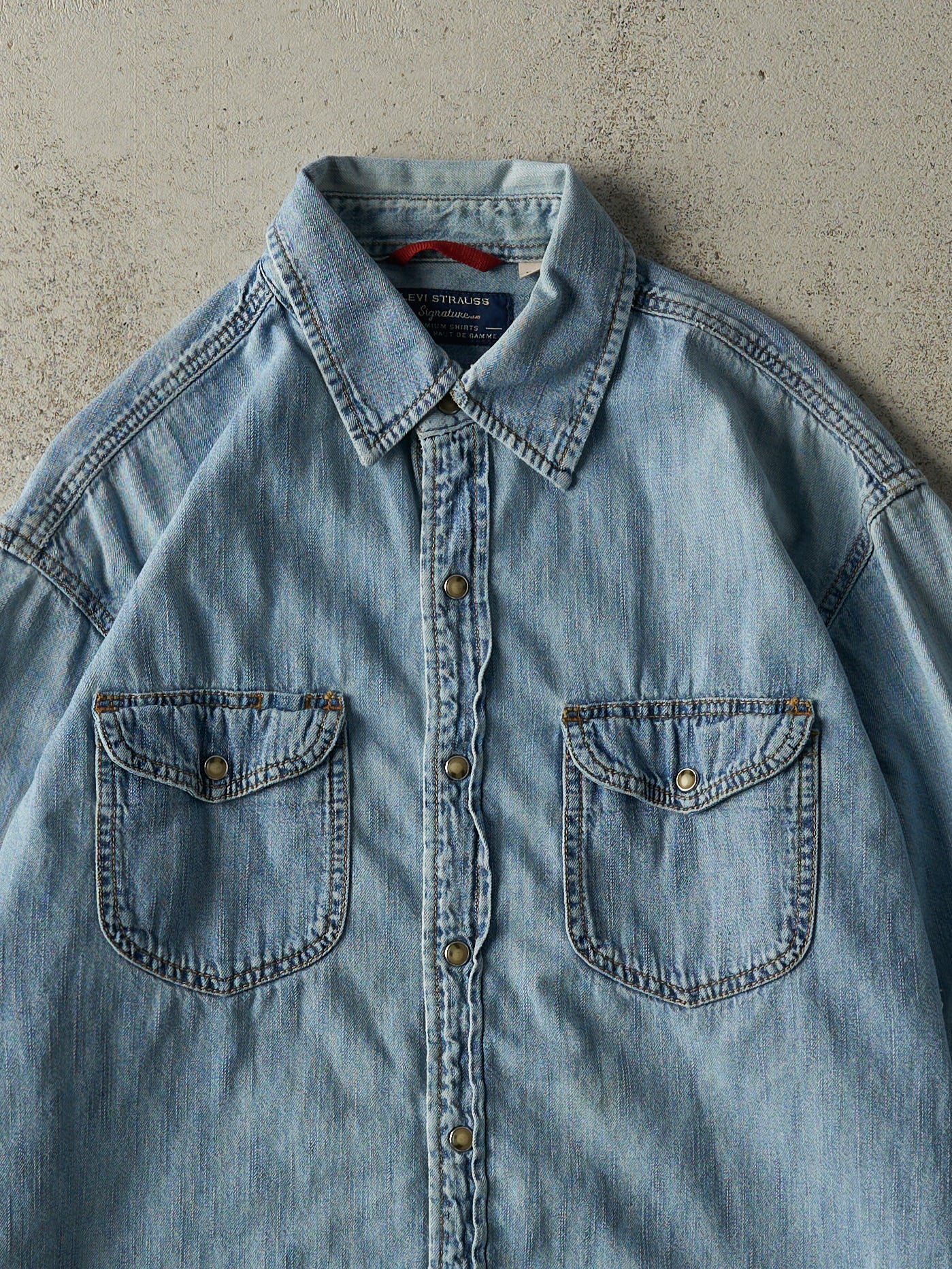Vintage Y2K Light Wash Levi's Denim Button Up (L)