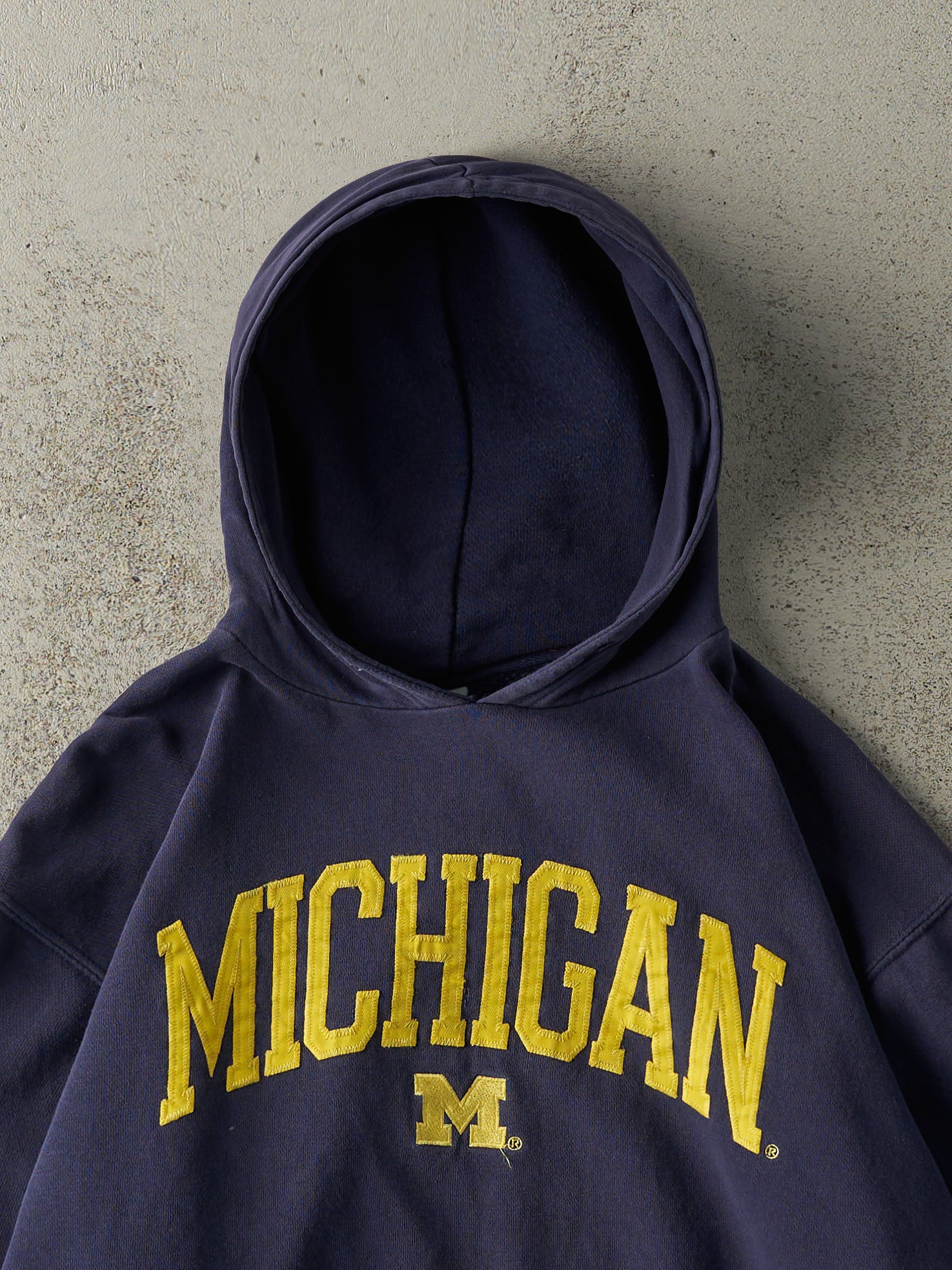 Vintage Y2K Navy Blue Embroidered University Michigan Hoodie (L)