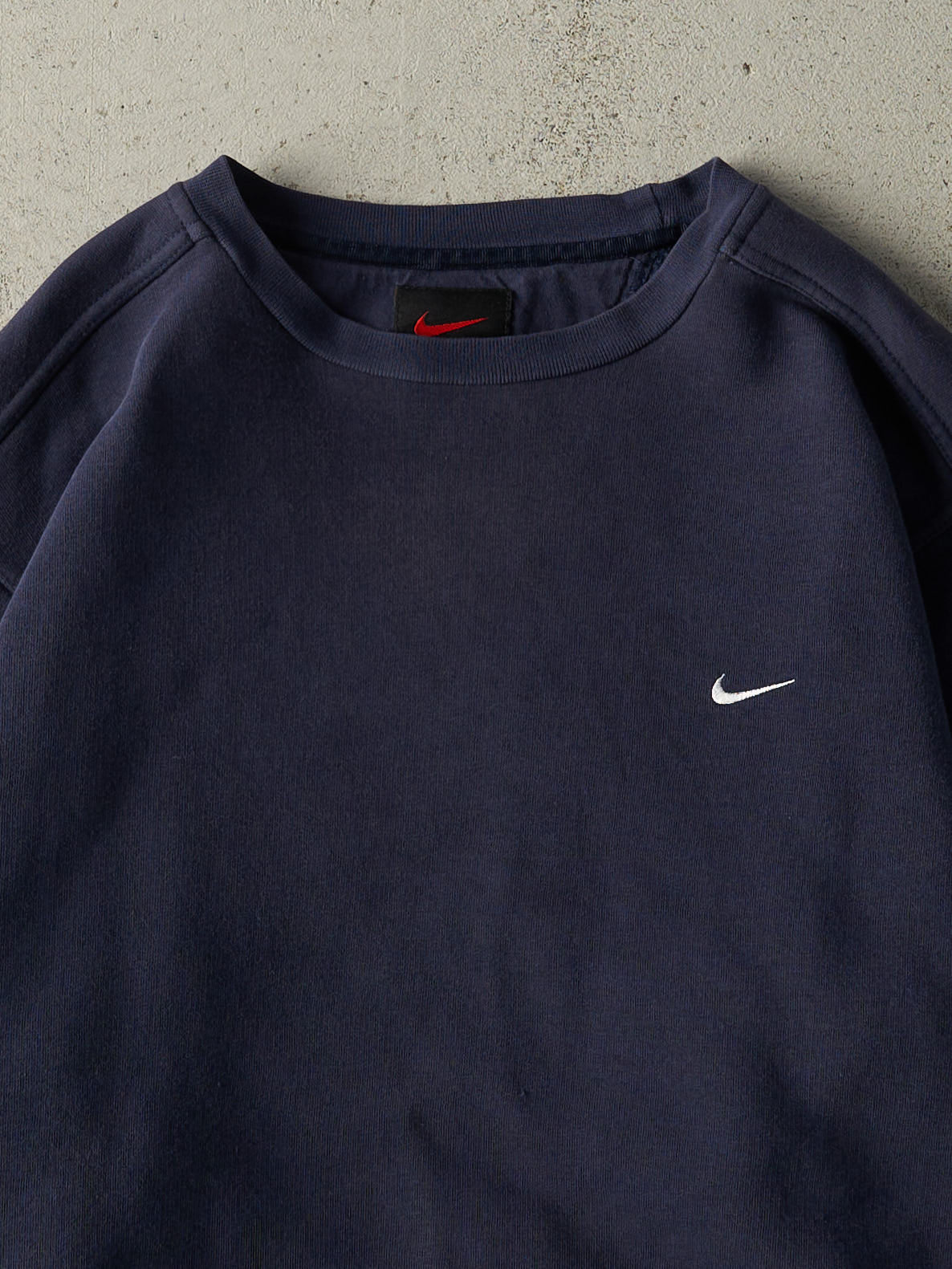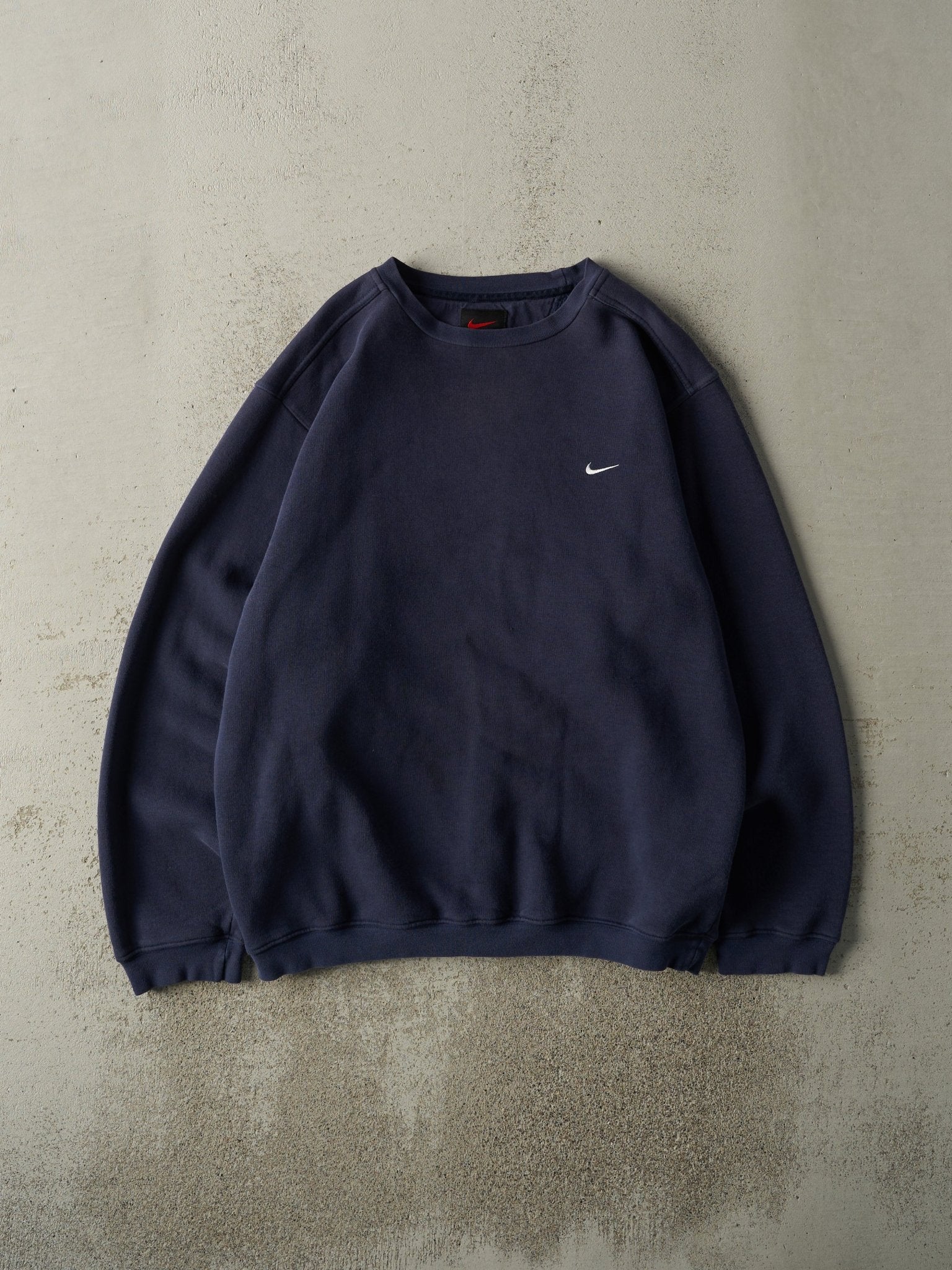 Vintage Y2K Navy Blue Embroidered Nike Swoosh Crewneck (L)