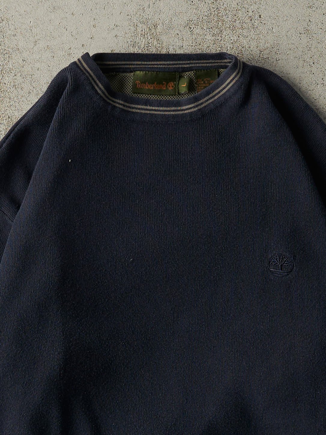 Vintage Y2K Navy Blue Embroidered Timberland Thermal Long Sleeve (M)