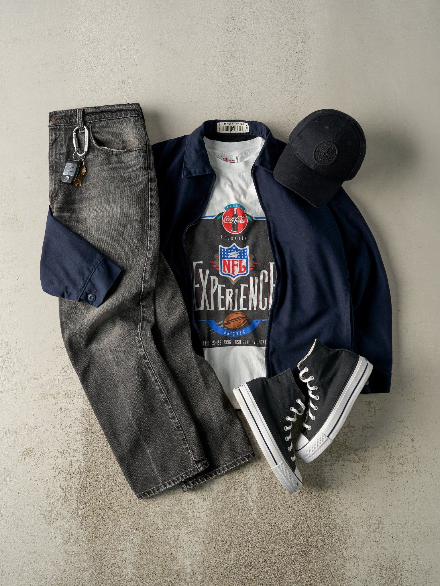 **Please note, due to the garment being vintage, sizing doesn't necessarily match the tagged size presented on the garments tag. Base your decisions off the measurements & recommended sizing. Also, due to the item being anywhere from 20-50 years old, minor defects could be present among the product, such as minor distressing, stains, etc. If you have any questions about the item or any other products contact us via Instagram @rebalancevintage or email us at customerservice@rebalancevintage.com