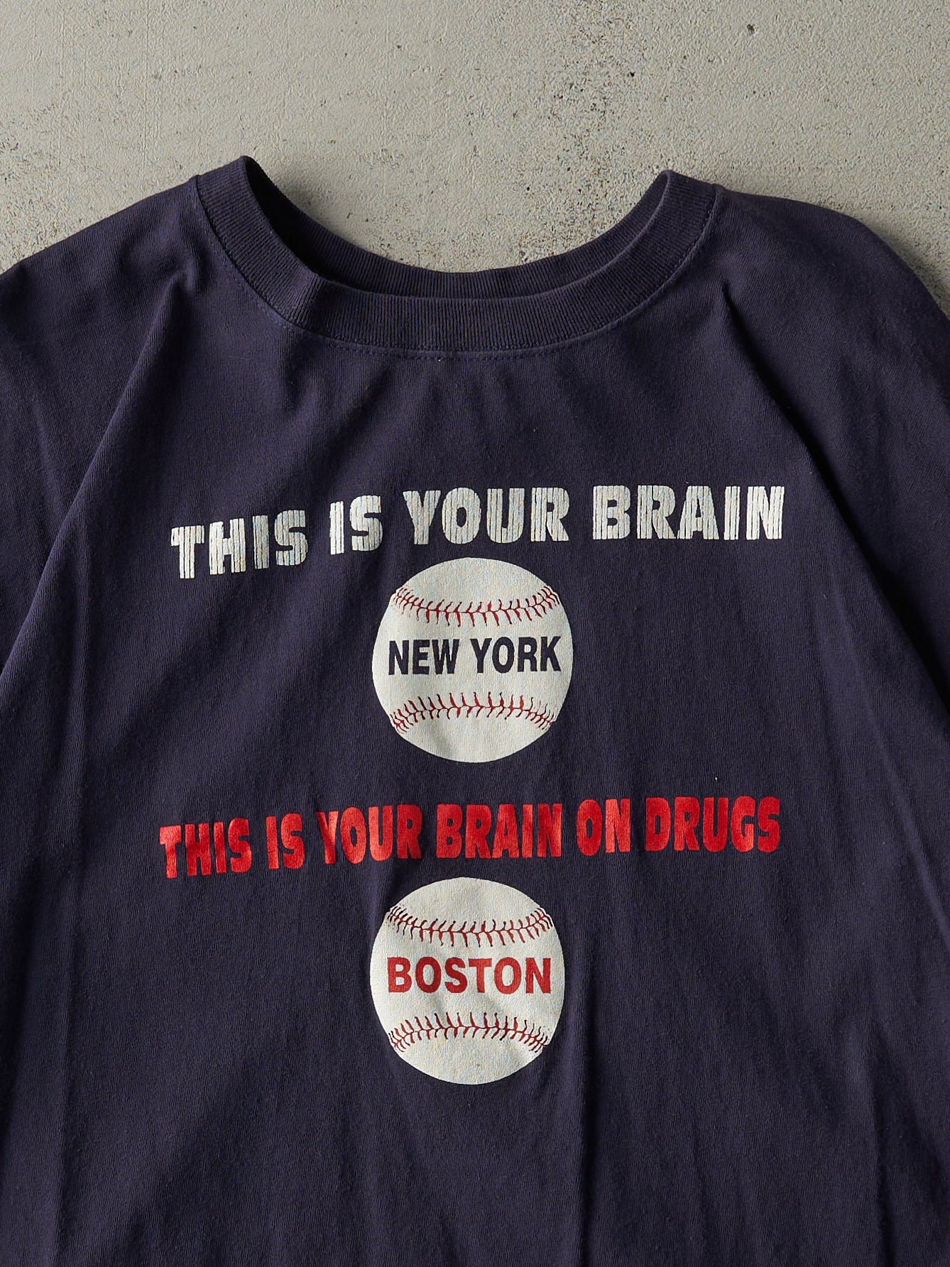 Vintage Y2K Navy Blue New York Yankees x Boston Red Sox Parody Tee (L)