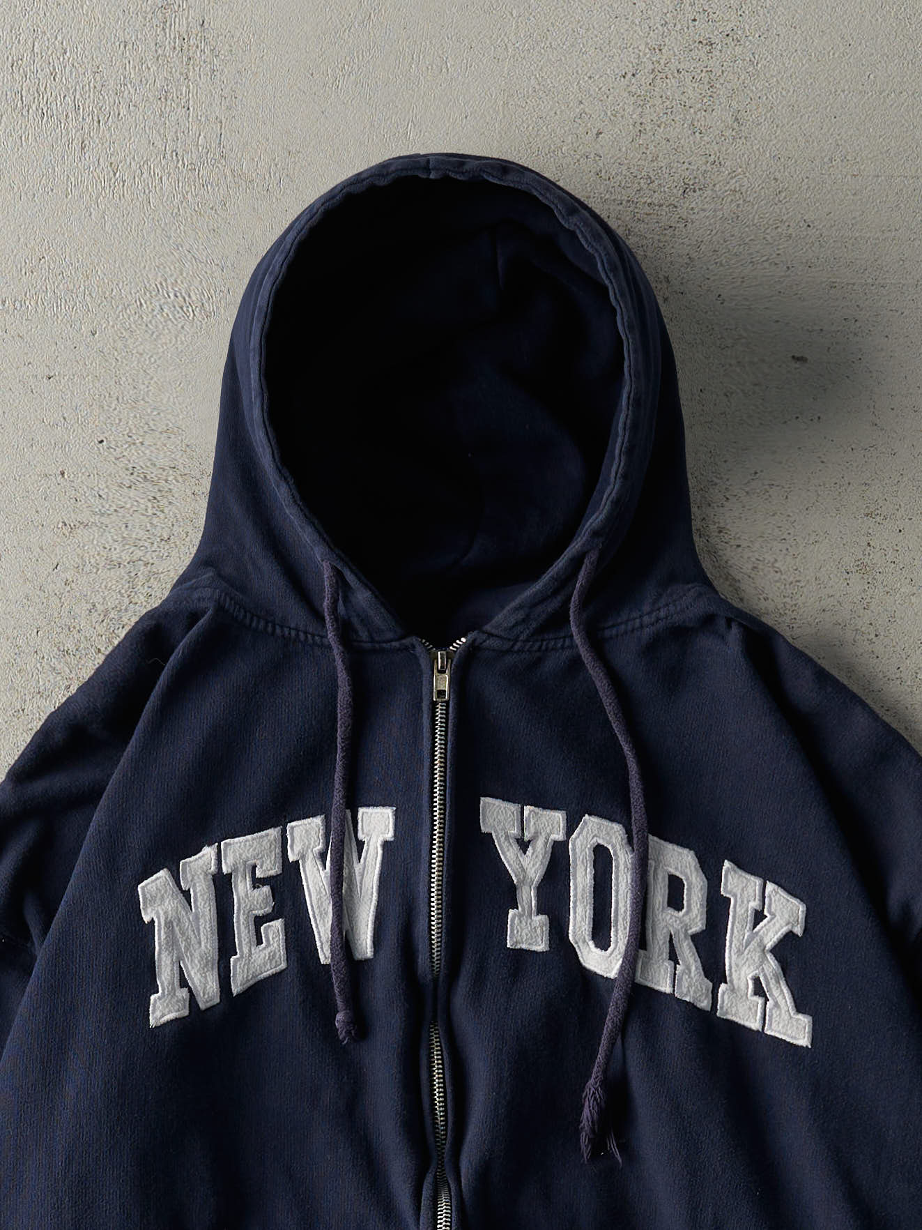 Vintage Y2K Navy Blue New York Zip Up Boxy Hoodie (M)