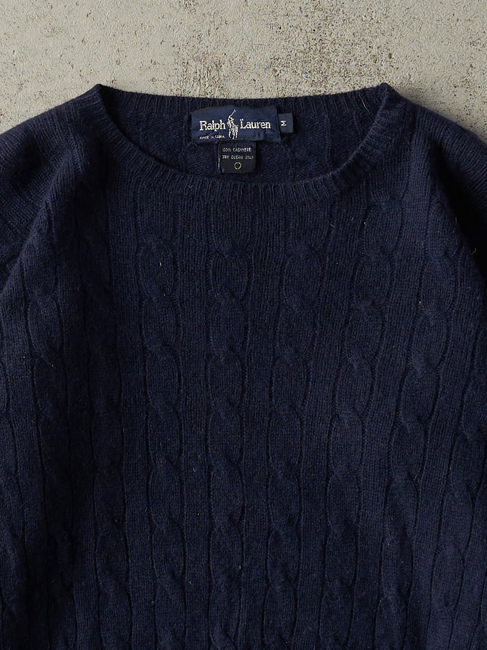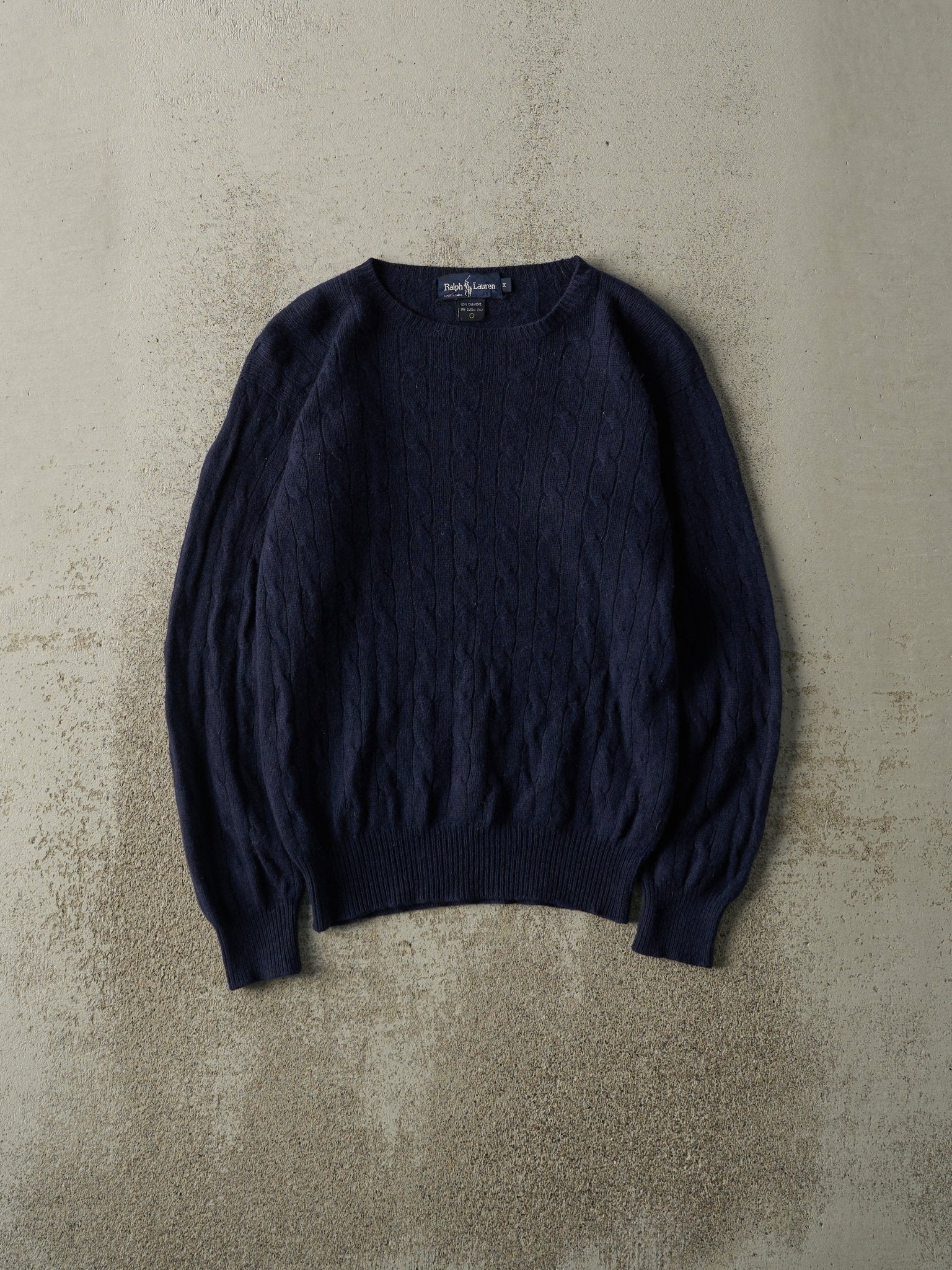 Vintage Y2K Navy Blue Ralph Lauren Cable Knit Pullover (XS)