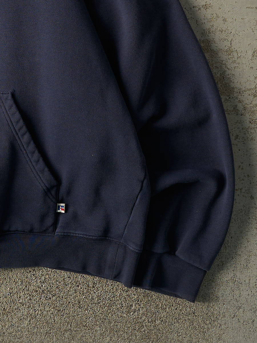 Vintage Y2K Navy Blue Russell Athletic Blank Boxy Hoodie (L)