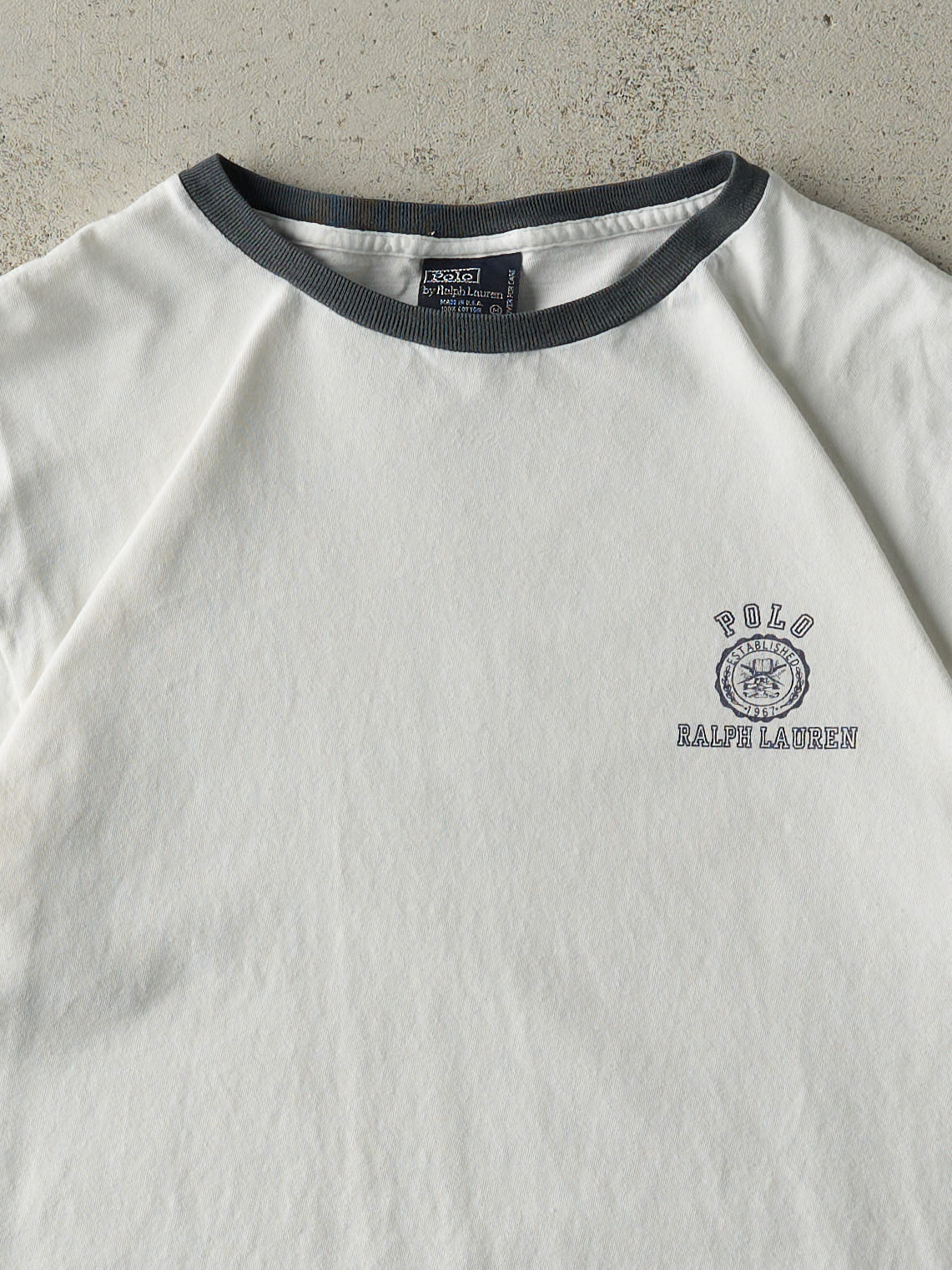Vintage Y2K White & Navy Polo Ralph Lauren Ringer Tee (M/L)